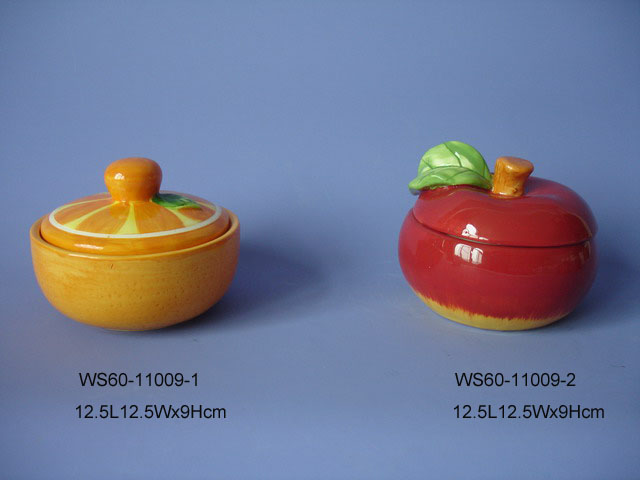 The showcased tabletop ashtray on the left boasts an apple-shaped design with ceramic finish. It comes with a lid, which is distinctively created with a stem and leaf on the top as a real fruit. With the reflective coating, its chromatic finish can prevent corrosion and color fading.