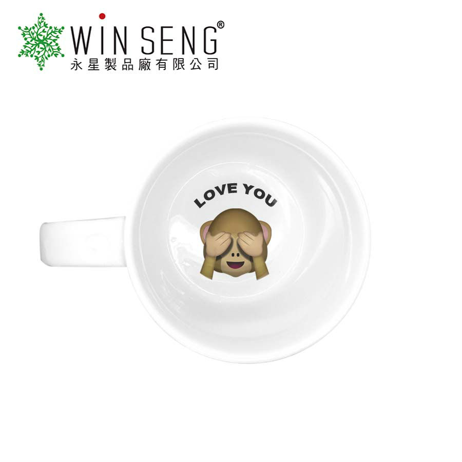 Perfectly sized for a large cup of coffee, this ceramic mug makes a nice addition to your office and home. Rendered with a plain background, the mug features a separated message of “I Love You” on its exterior and interior with a see-no-evil monkey emoji. Coming with a curved handle, the mug is suitable for either hot or cold beverages.