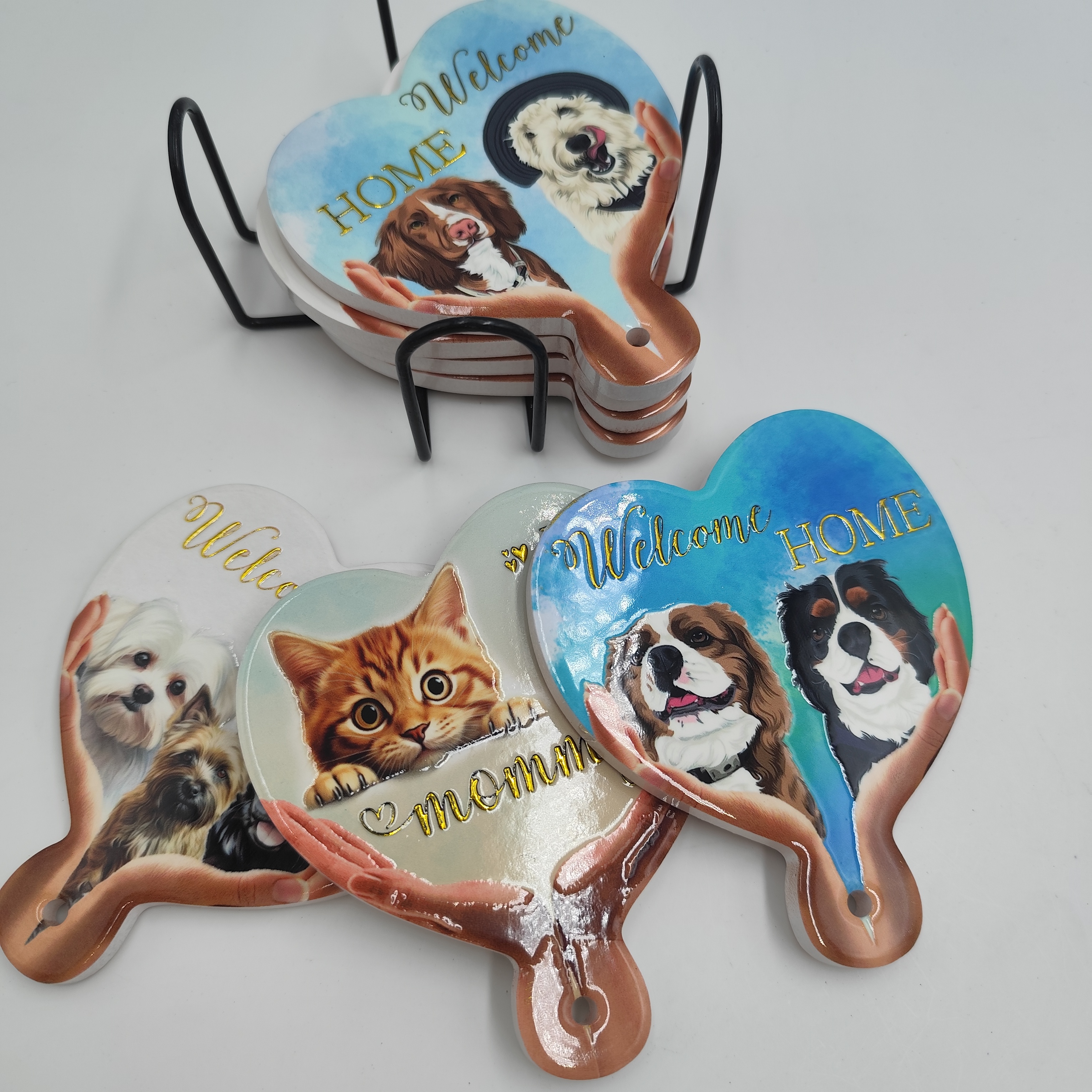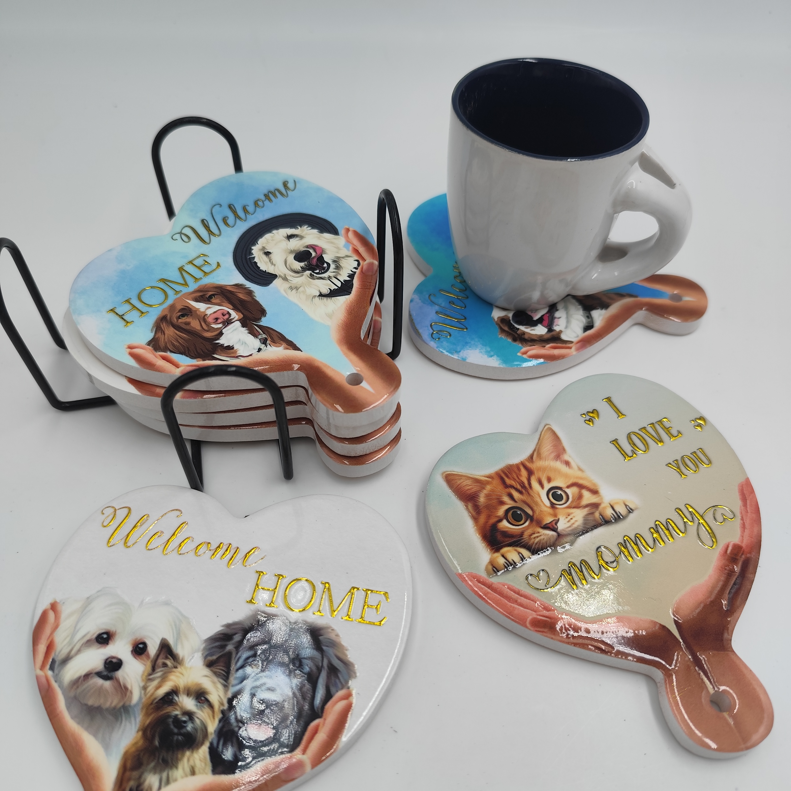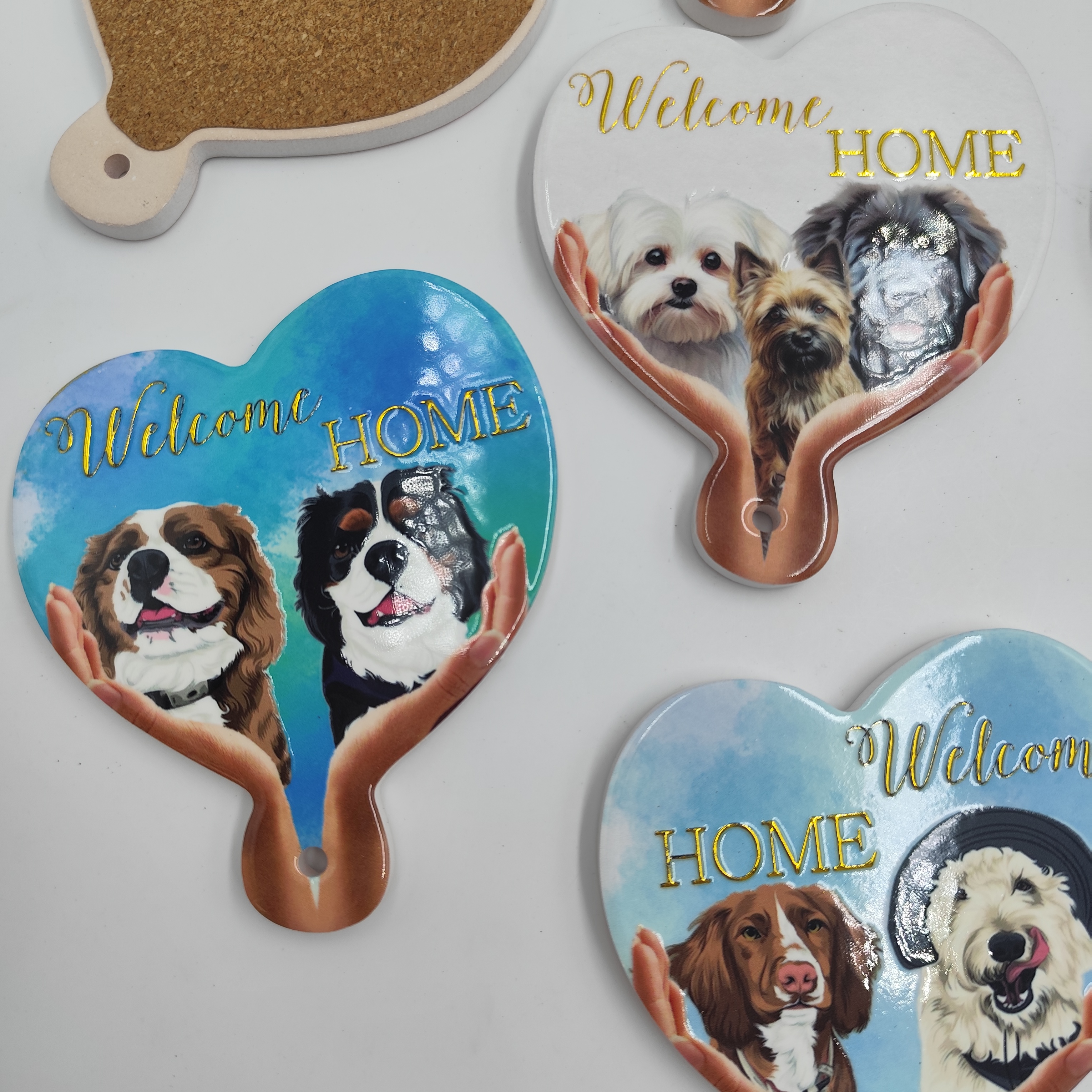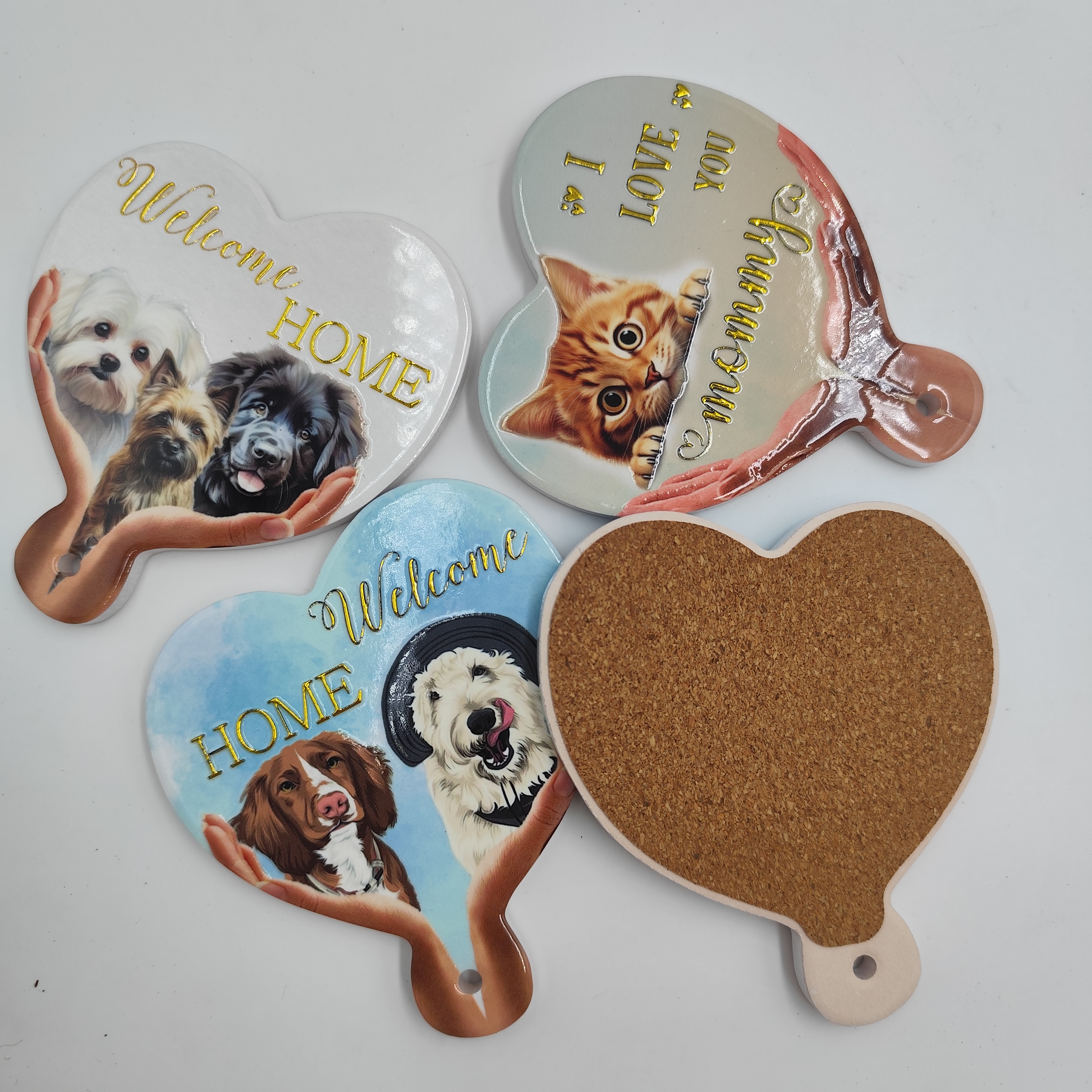 Ceramic Cup Mat Sublimation Coasters Dog Pattern Blank Ceramic coaster with Cork Back Custom Printed Heart Cork Coasters