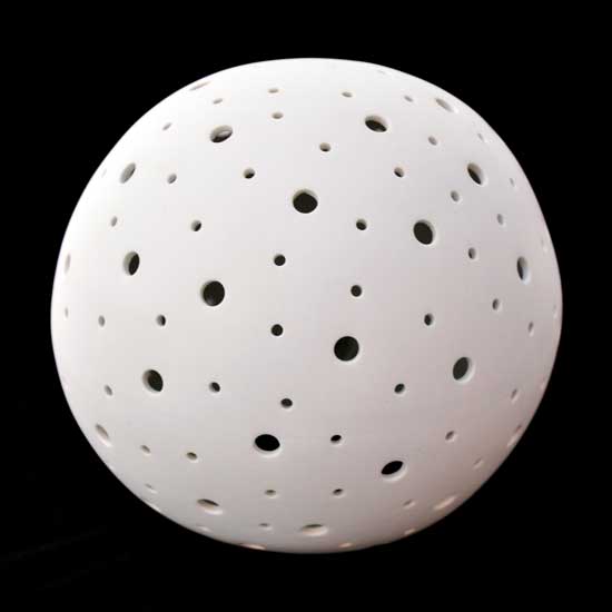 This ceramic desk lamp features a perforated spherical appearance in white. It can be placed in different rooms for decoration. The unconventional design adds style and personality to your indoor decor.