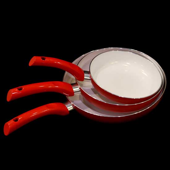 Featured here is a series of frying pans with robust aluminum construction. The ceramic coating allows easy cleaning. Different sizes are available for your option.