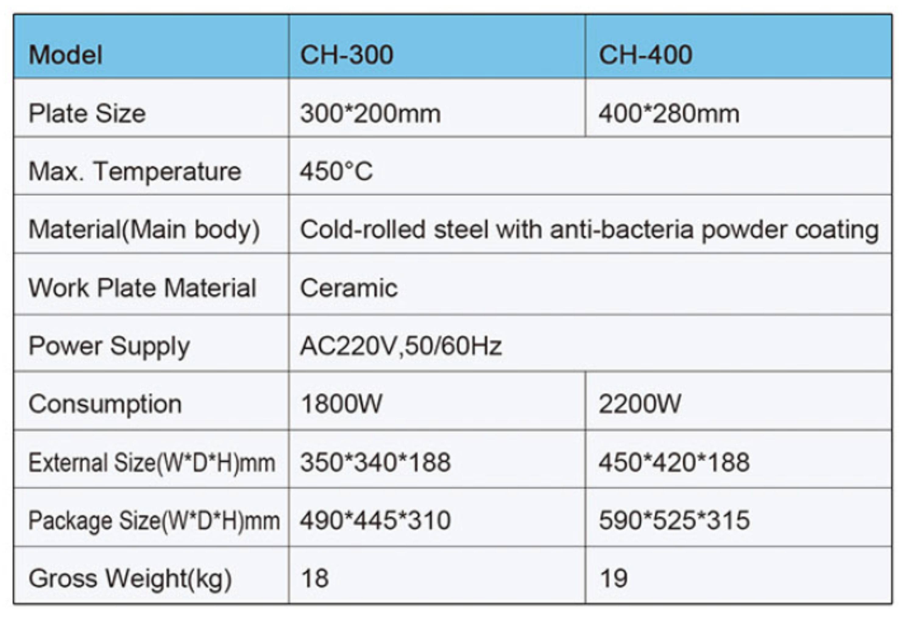 *Totally enclosed ceramic heating plate, with halogen-light, heating up fast, safe and reliable.