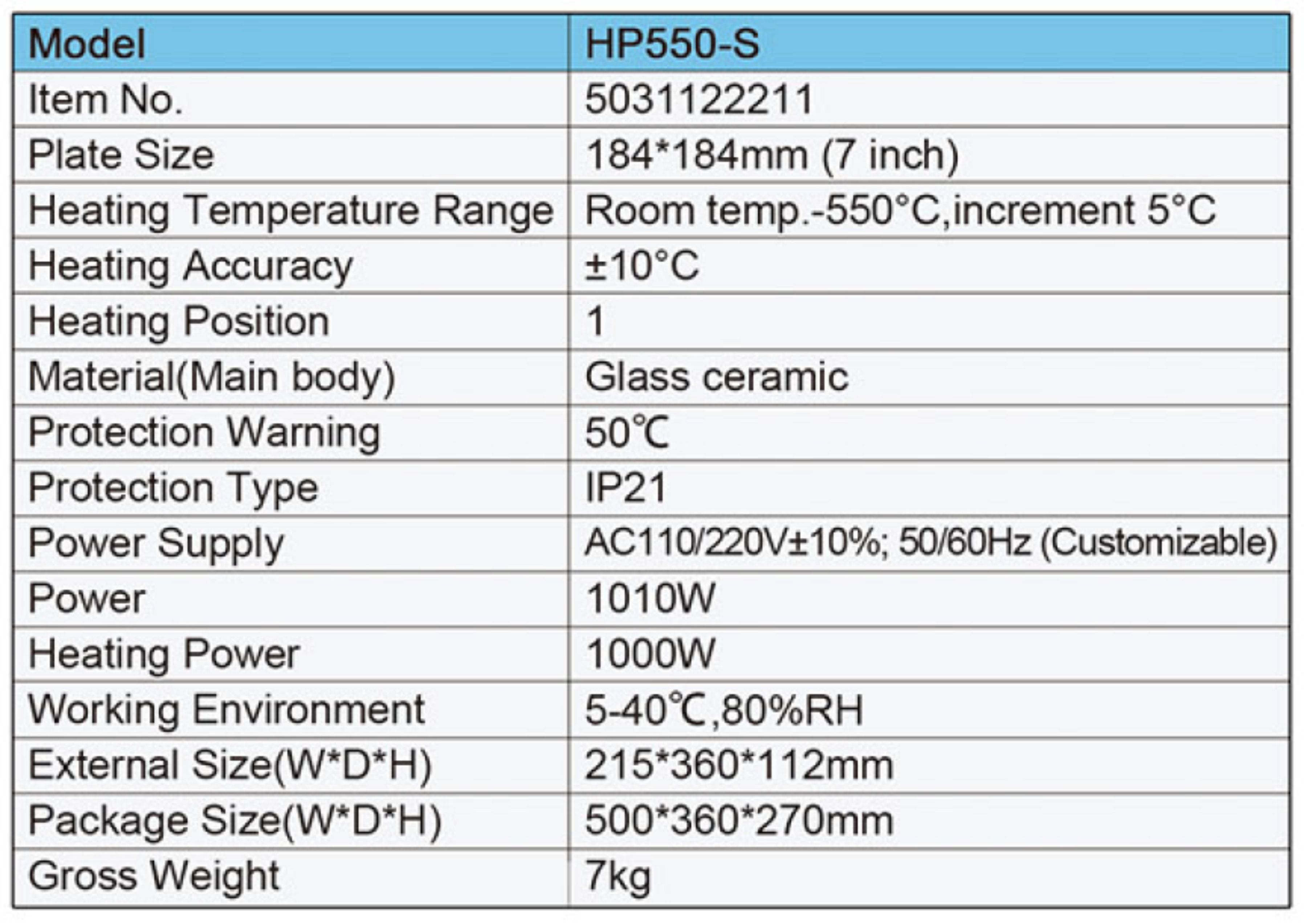 *Totally enclosed glass ceramic heating plate, provides chemical-resistant and most efficient heat transfer.