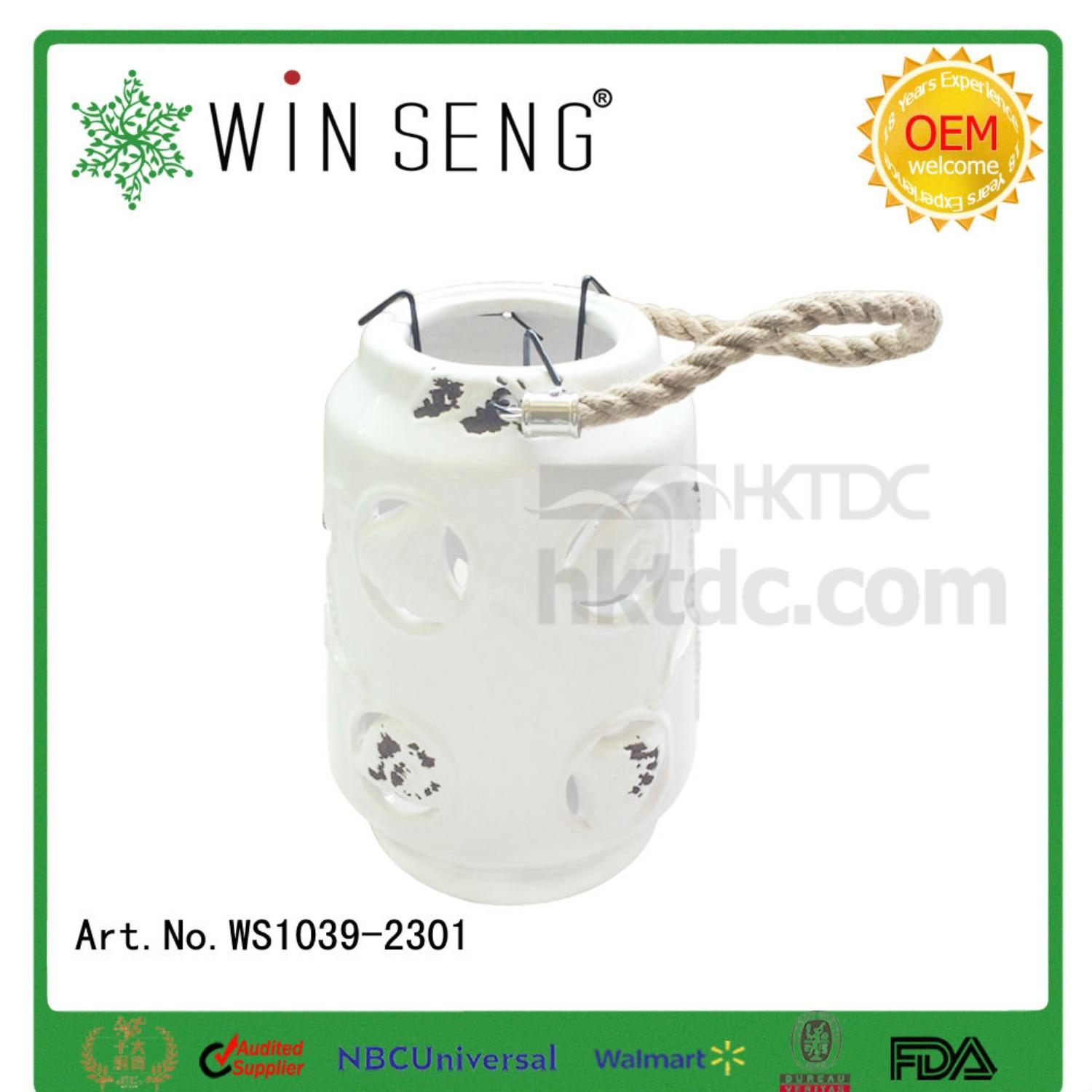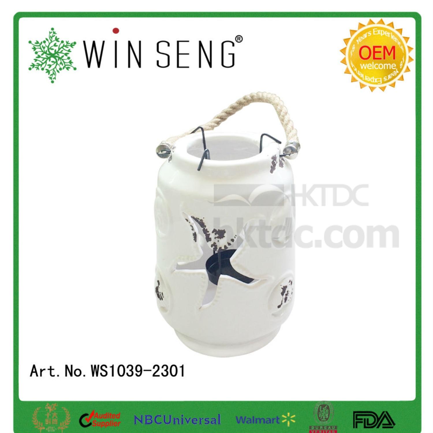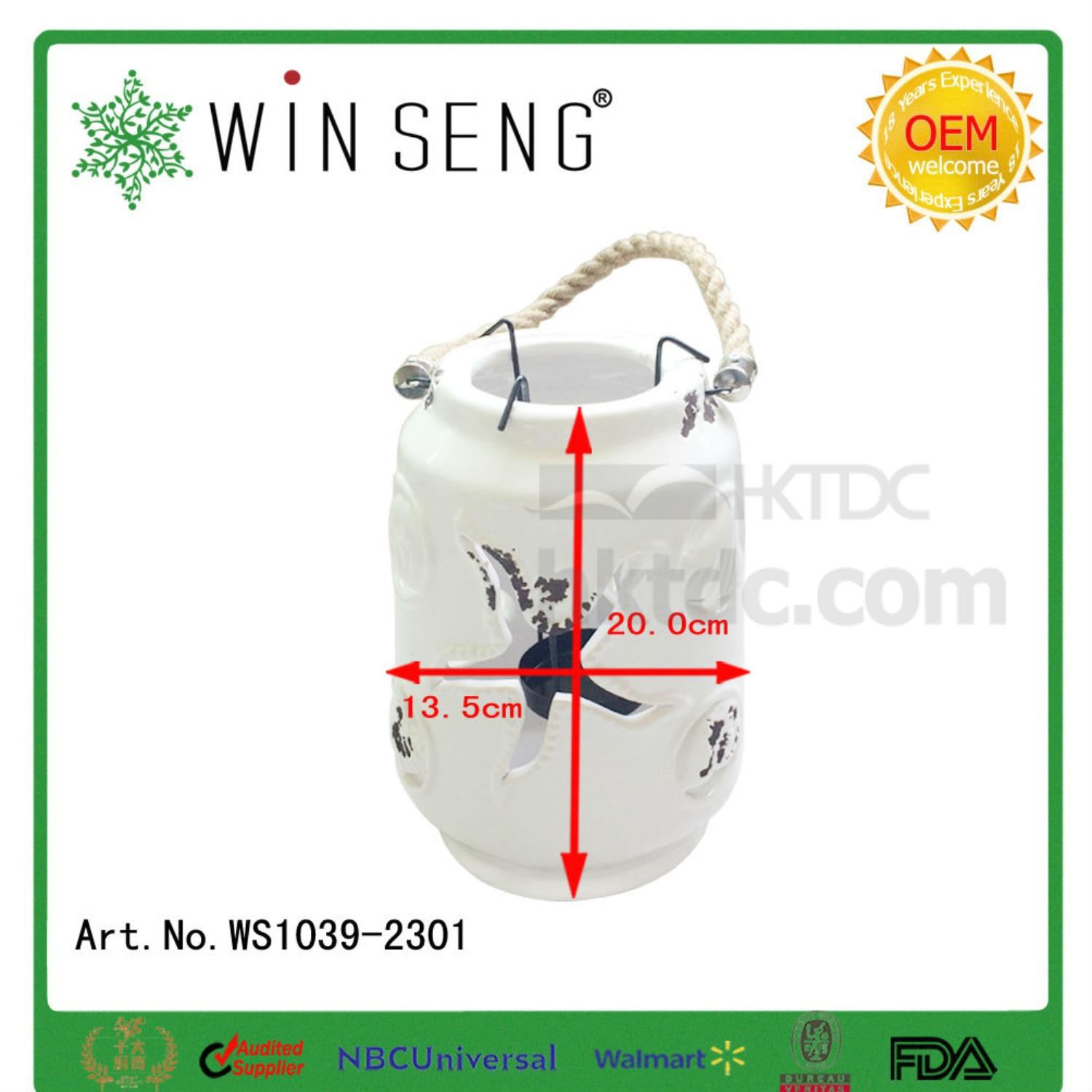 This incense burner is made of ceramic and comes in an elegant design. It has a glossy exterior and is embellished with ocean themed patterns on the body. With a rope handle on top, this incense burner is convenient to hang and carry around.