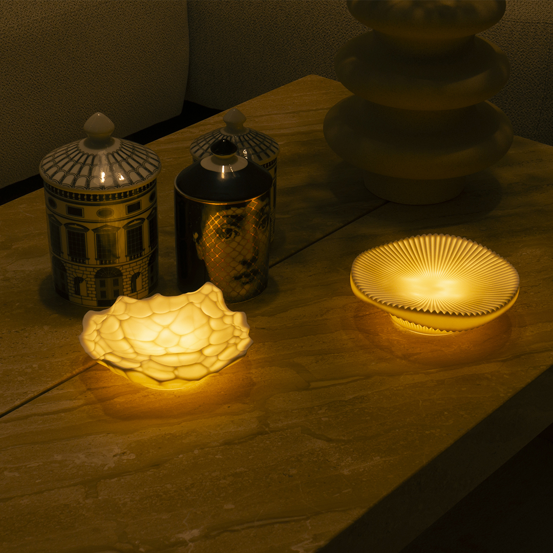 Inspired by the beauty of flowers, the mood lamp's unique appearance, which combines ceramics with electronic components, creates a sophisticated, distinctive atmosphere in the space as an object.