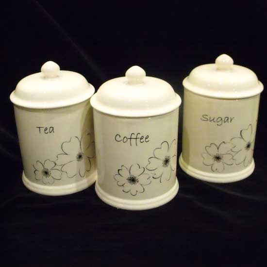 Shown here is a beautiful ceramic jar set that can add a touch of uniqueness to your home. This set includes three ornate ceramic jars that are decorated with fine floral patterns. This excellent tableware set is the perfect addition to your collection.