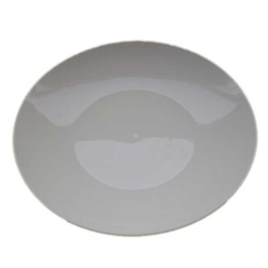 Presented to you is a white plate in a round shape. The polished ceramic construction showcases a neat and clean finish. This ceramic plate complements your dining table nicely.