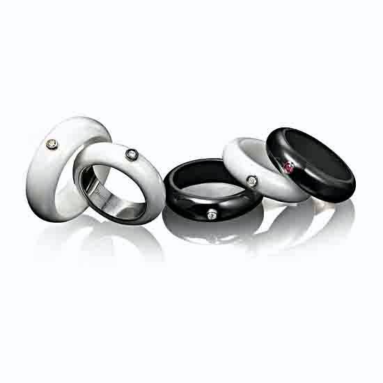 This ceramic ring is compatible with both diamonds and semi-precious stones. This ceramic has a special texture differentiating from the other rings. This ceramic ring with gems is simple and stylish.