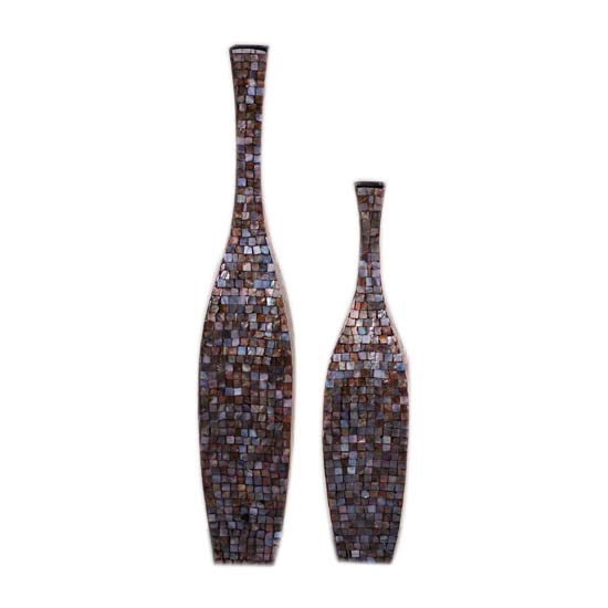 The long-neck ceramic vase set features a streamline design. The rich mosaic patterns offer a touch of uniqueness. This stunning ceramic vase set will add a glamorous and sophisticated element to your home.