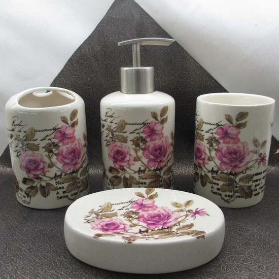 This ceramic wash set comes with a lotion bottle, a toothbrush holder, a tooth mug and a soap saucer. The colorful flower patterns add a touch of style to each piece. This wash set is an ideal accessory to complete your bathroom.