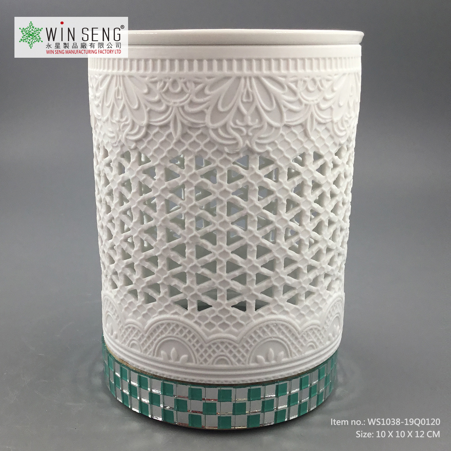 • Item Name: Ceramic White Lace Holes With Green And White Base Candle Holder