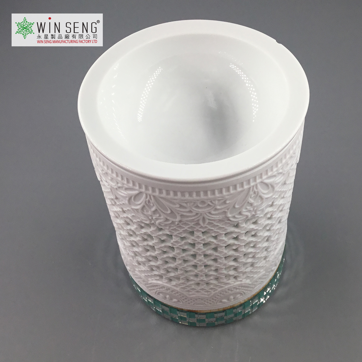 Ceramic White Lace Holes With Green And White Base Candle Holder