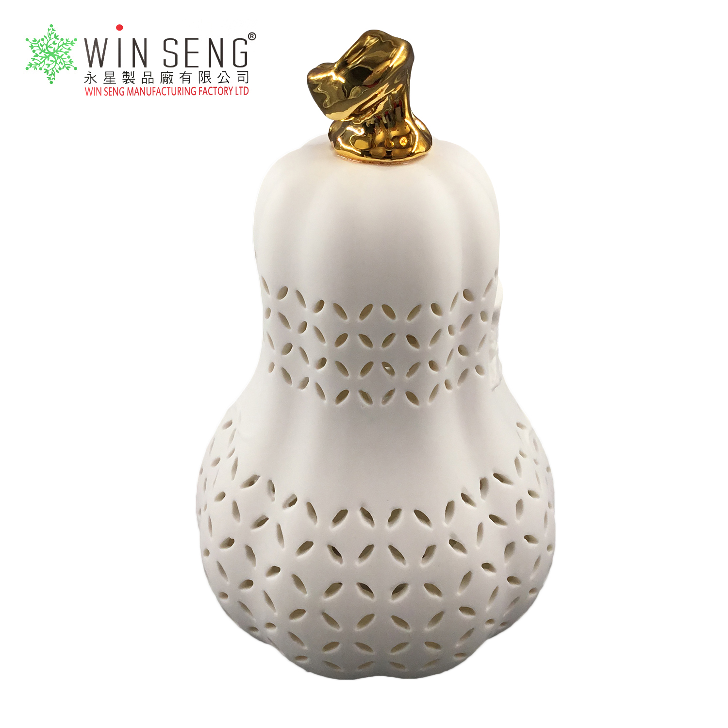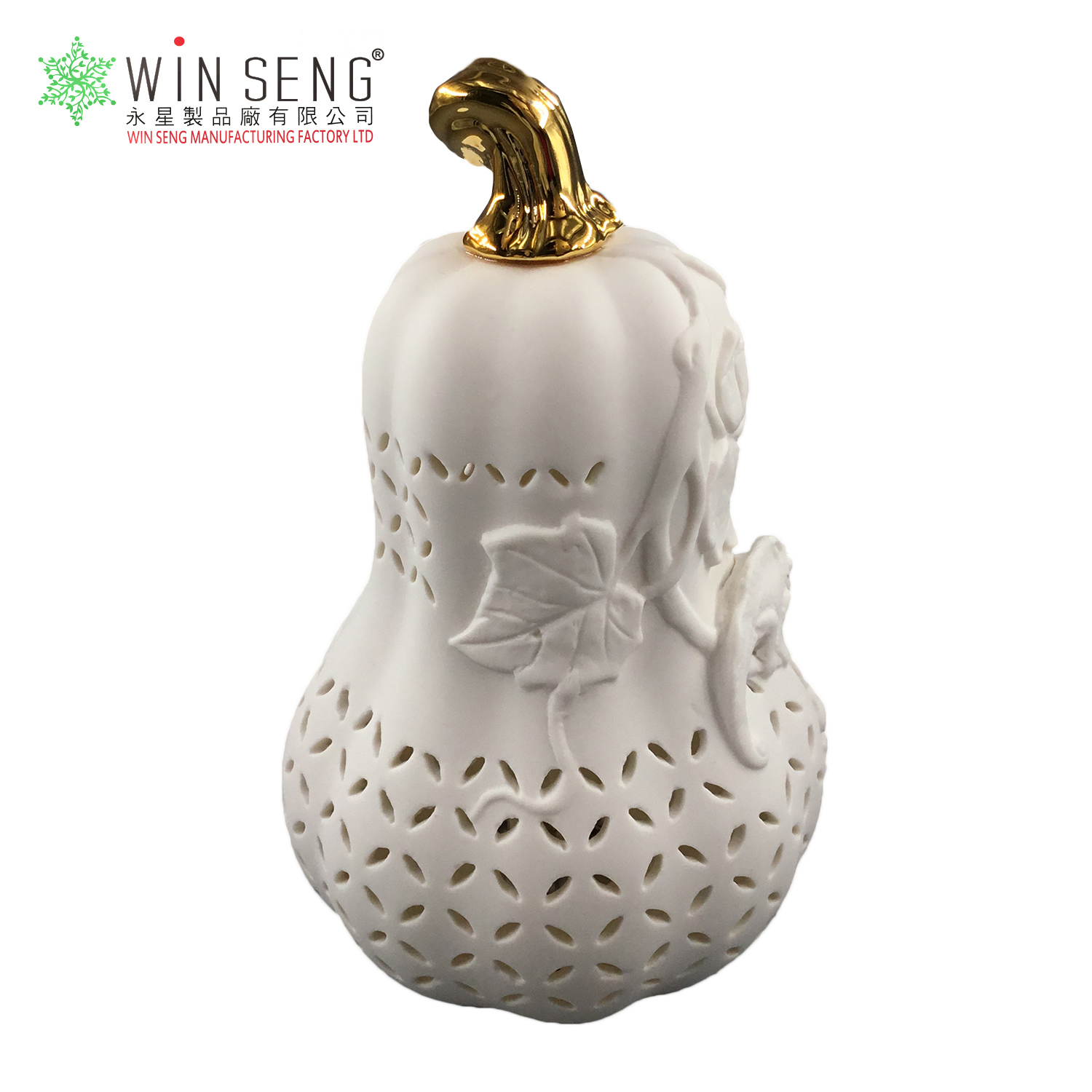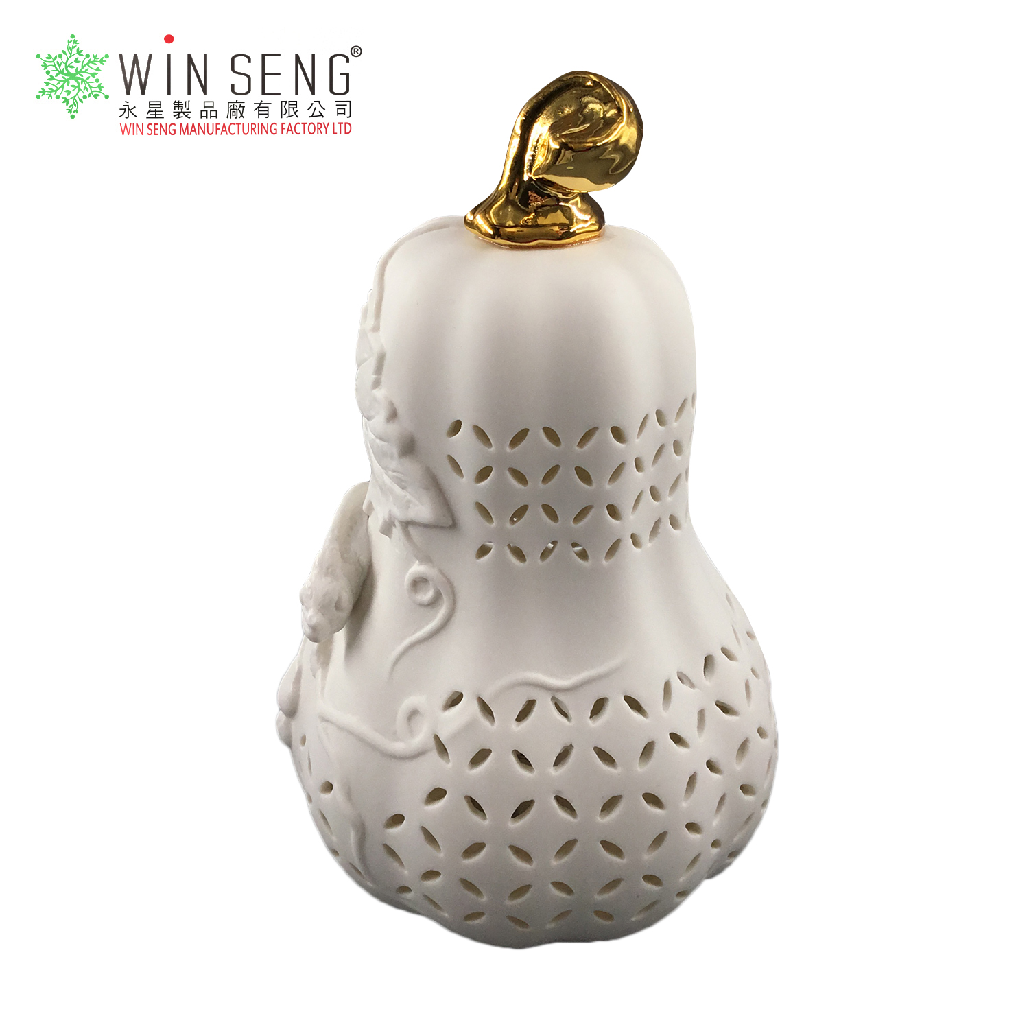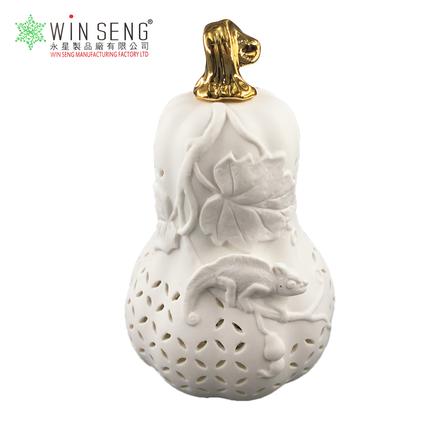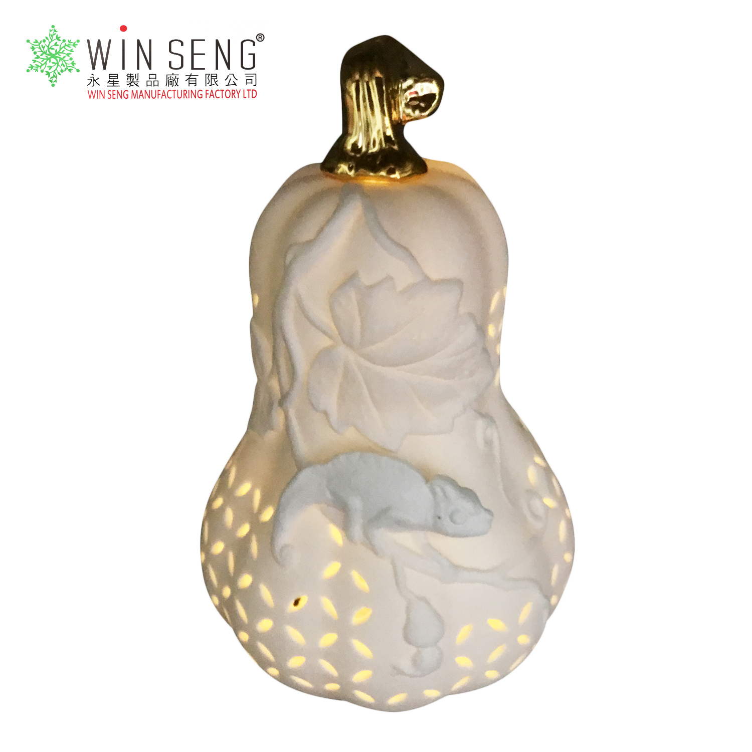 • Item Name: Ceramics White Tall Melon With Chameleon Decoration Lamp
