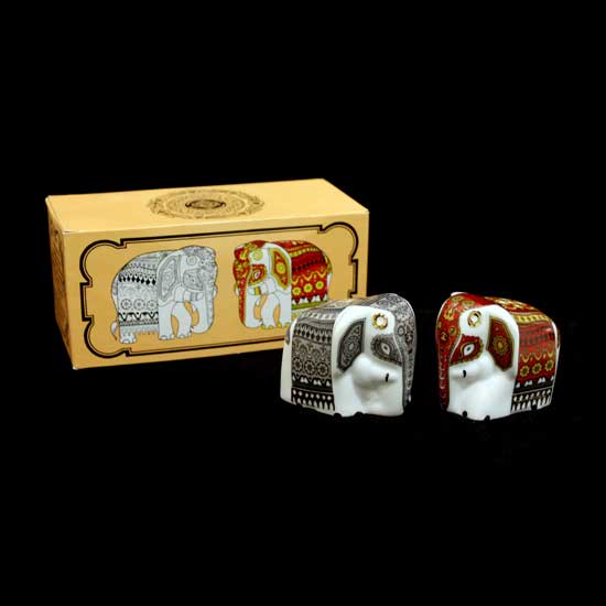 This premium Ceylon tea is finely packaged in a set of porcelain elephants decorated with traditional perahera garments. Each porcelain elephant contains 25g of quality O.P. tea from the tea gardens of Sri Lanka. These two elephant caddies have been designed to be used as a salt and pepper cruet set after consuming the tea.