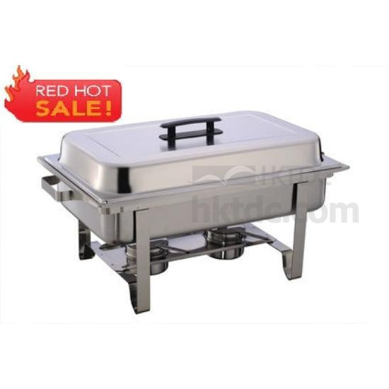 This 9L full size economy chafer comes with everything you need to get started. It includes a 4" deep water pan, a 2 1/2 deep food pan, a 2 1/2" high dome cover and two fuel holder.