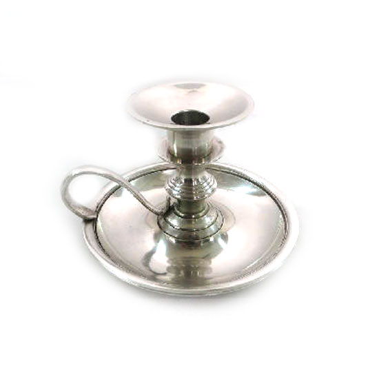This chamber stick can perform both practical and decorative functions with its classic design. It flaunts a luxurious touch with its fine polish and high-gloss silvery finish. The dish at the base can hold molten wax and help keep your tabletop clean.