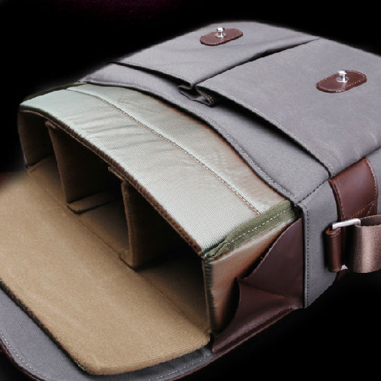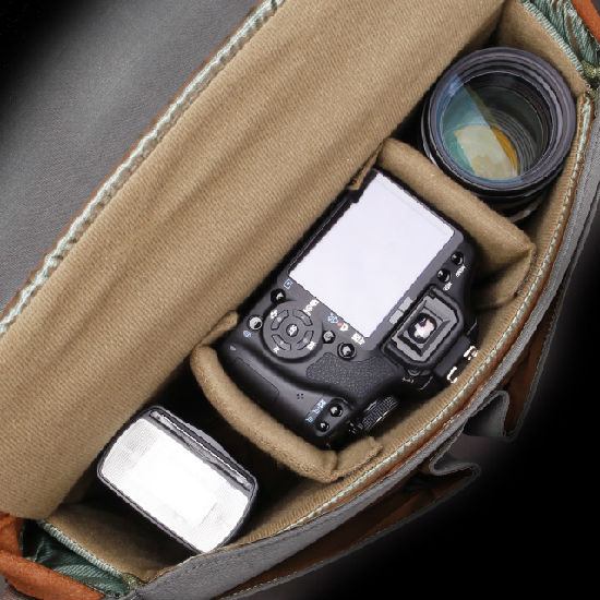 This is a brown-toned camera bag in a shoulder bag design. It not only holds your DSLR and related accessories, but also holds your personal belongings. This stylish camera shoulder bag is great for on-the-go use