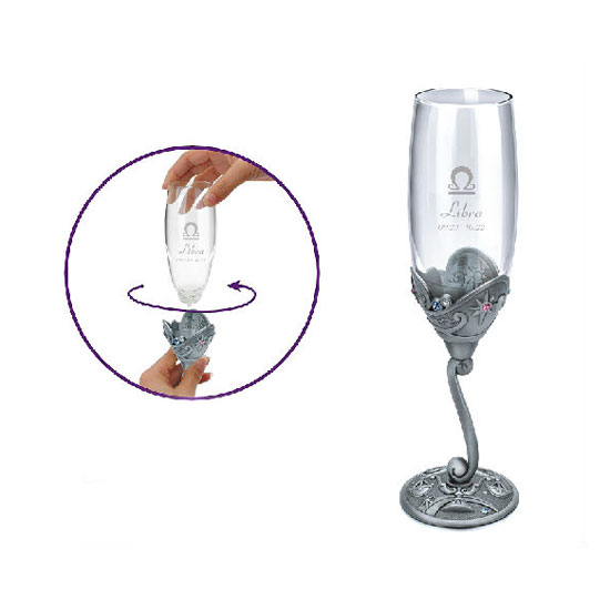 This champagne goblet comes with a detachable metal stand designed with the Libra symbol. The ergonomic design allows you to hold it conveniently. This champagne goblet is an excellent choice for various festive occasions.