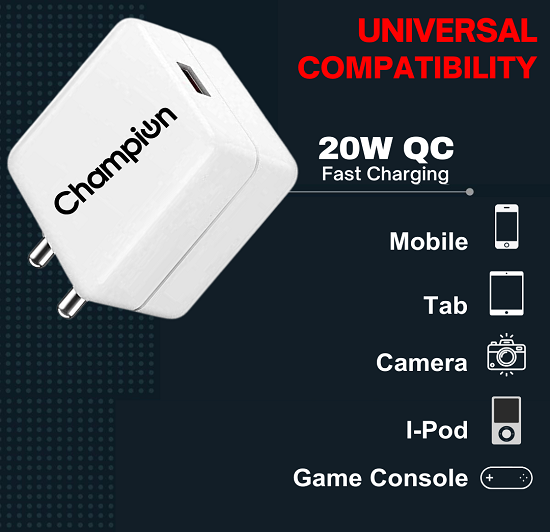 Experience rapid charging with the Champion 20W Quick Charging Wall Adapter. Designed for iPhone, Android, and USB-C devices, this sleek white charger delivers efficient, high-speed power in a compact form. With advanced safety features and smart charging technology, it ensures reliable performance at home, in the office, or on the go. Enjoy fast, secure charging that adapts to your device’s needs while protecting against overcharge and short-circuit risks.
