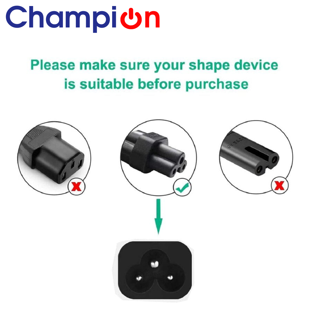 Upgrade your power connectivity with the Champion 3-Pin AC Power Cable, designed for laptops and notebooks. This universal replacement power cord ensures a safe and reliable power supply to your device. Built with high-quality materials, it offers enhanced durability, superior performance, and long-lasting use.