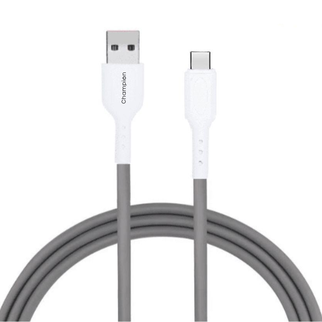 Experience fast charging and seamless data synchronization with the Champion USB A to Type-C cable. Engineered with high-quality TPE for exceptional durability and flexibility, this cable delivers up to 3A fast charging for your Android and USB Type-C devices. Available in both 1-meter and 2-meter lengths, its modern grey finish provides a sophisticated look that fits perfectly in any tech setup—whether at home, in the office, or on the go.