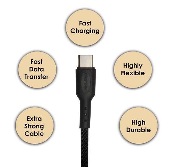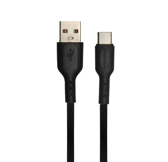 Experience reliable 3Amp fast charging and high-speed data sync with this 2M braided Champion USB to Type-C cable. Designed for durability and tangle resistance, it offers seamless connectivity for all Android and Type-C devices in a sleek black finish.