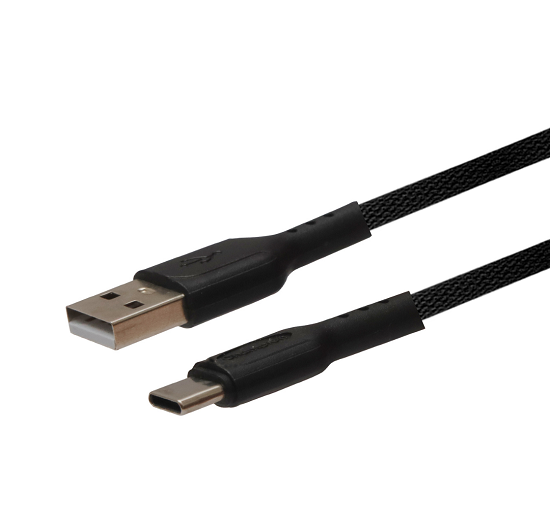 USB to Type-C 3Amp Data Sync & Fast Charging Cable Braided (Black) - 2M