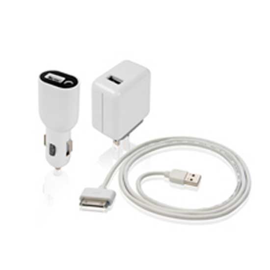 This power recharge kit is designed to power Apple iPads in short time. The set includes one USB cable with two chargers. You can now easily charge your iPod, iPhone, iPad and other USB devices via any standard AC power outlets.