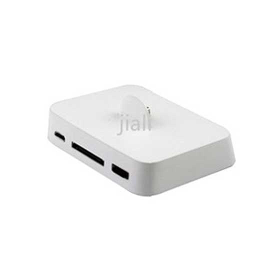 This is a charging dock with a white finish. Equipped with a lithium battery, it can charge a wide range of Apple products. Lightweight and with a slim design, this charging dock is a great portable power solution on the go.