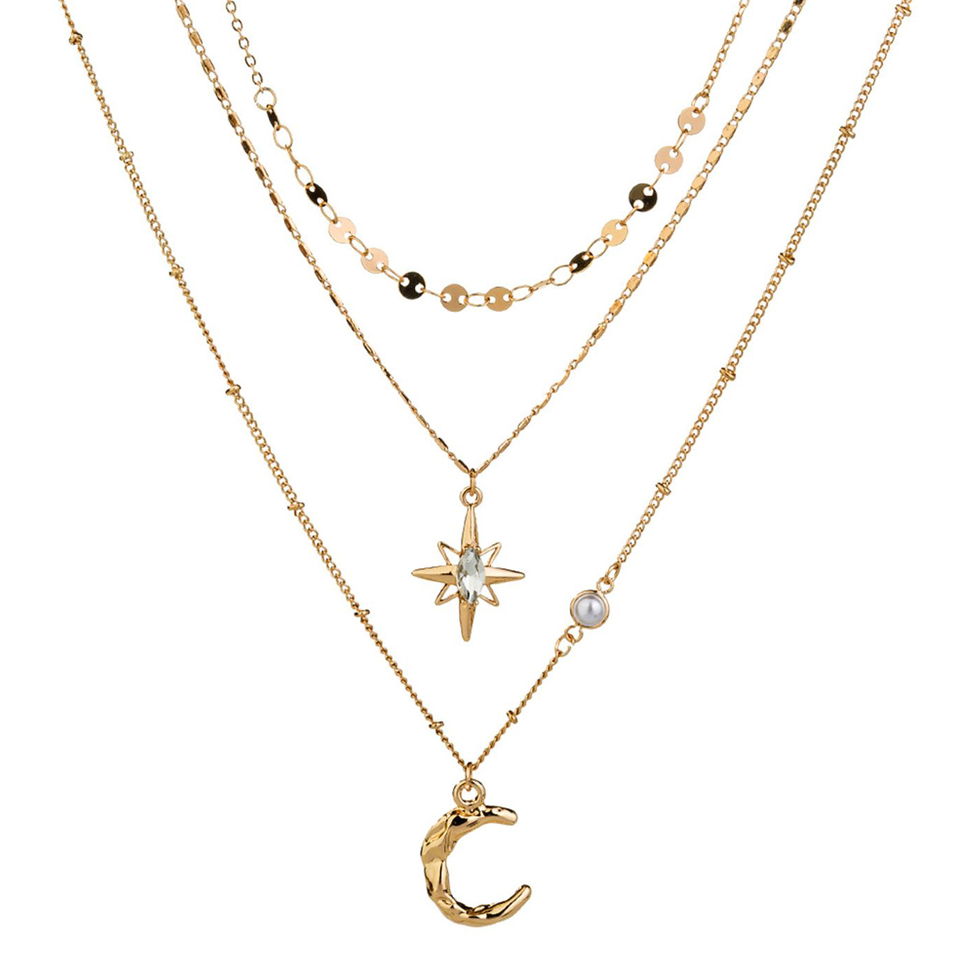 Charm Alloy Parts Golden Plated Multi Strand Chains Necklace