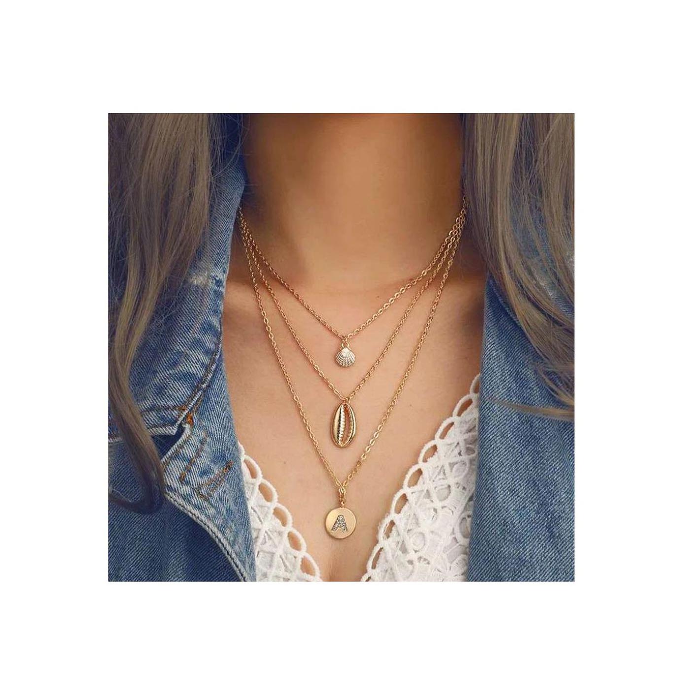 Charm Alloy Pendant Multi Strand Golden Plated Chains Necklace