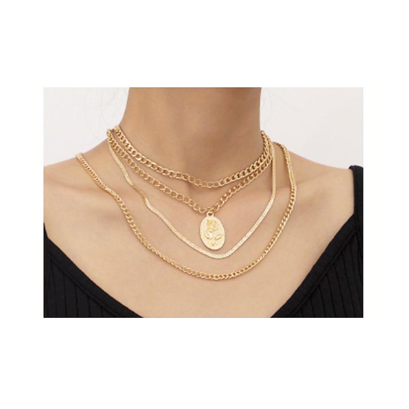 Charm Alloy Pendant Multi Strand Golden Plated Chains Necklace