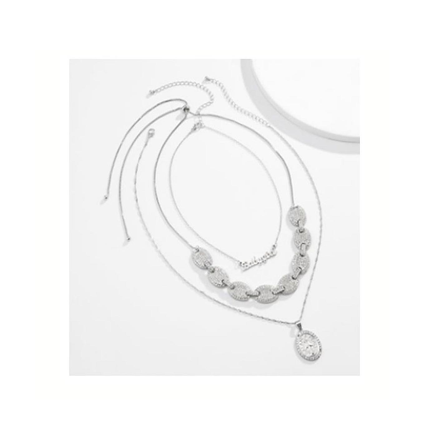 Charm Alloy Pendant Multi Strand Silver Plated Chains Necklace