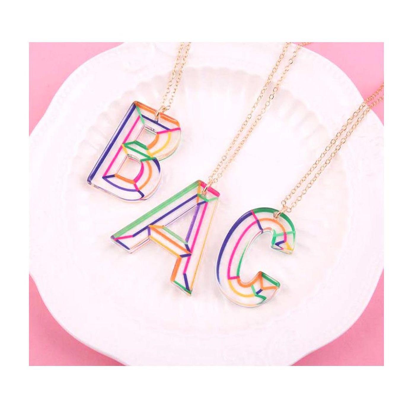 • As shown is a high-fashion acrylic materials alphabet pendant with golden plated chain.