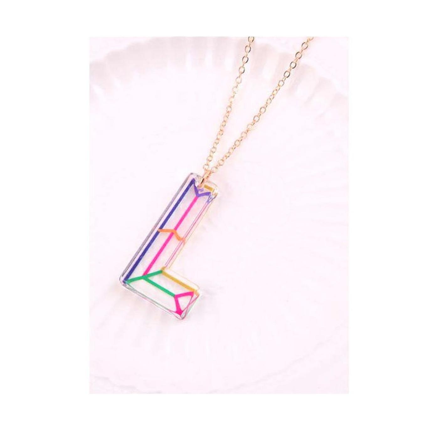 • As shown is a high-fashion acrylic materials alphabet pendant with golden plated chain.