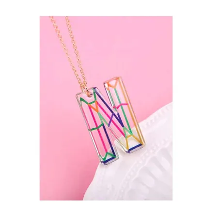 • As shown is a high-fashion acrylic materials alphabet pendant with golden plated chain.
