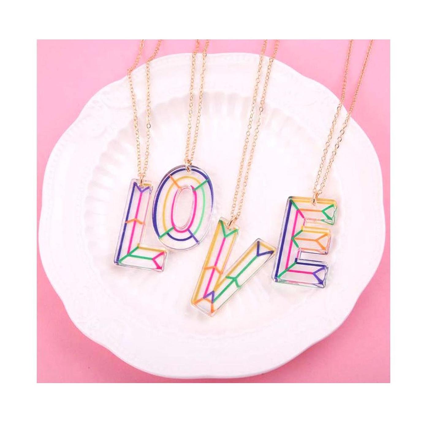 • As shown is a high-fashion acrylic materials alphabet pendant with golden plated chain.