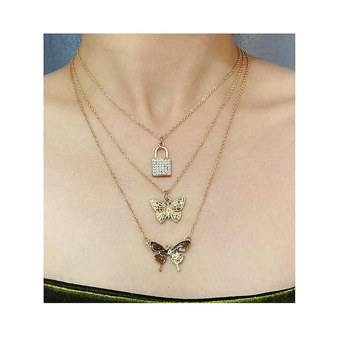 Charm Butterfly Alloy Parts Golden Plated Multi Strand Chains Necklace