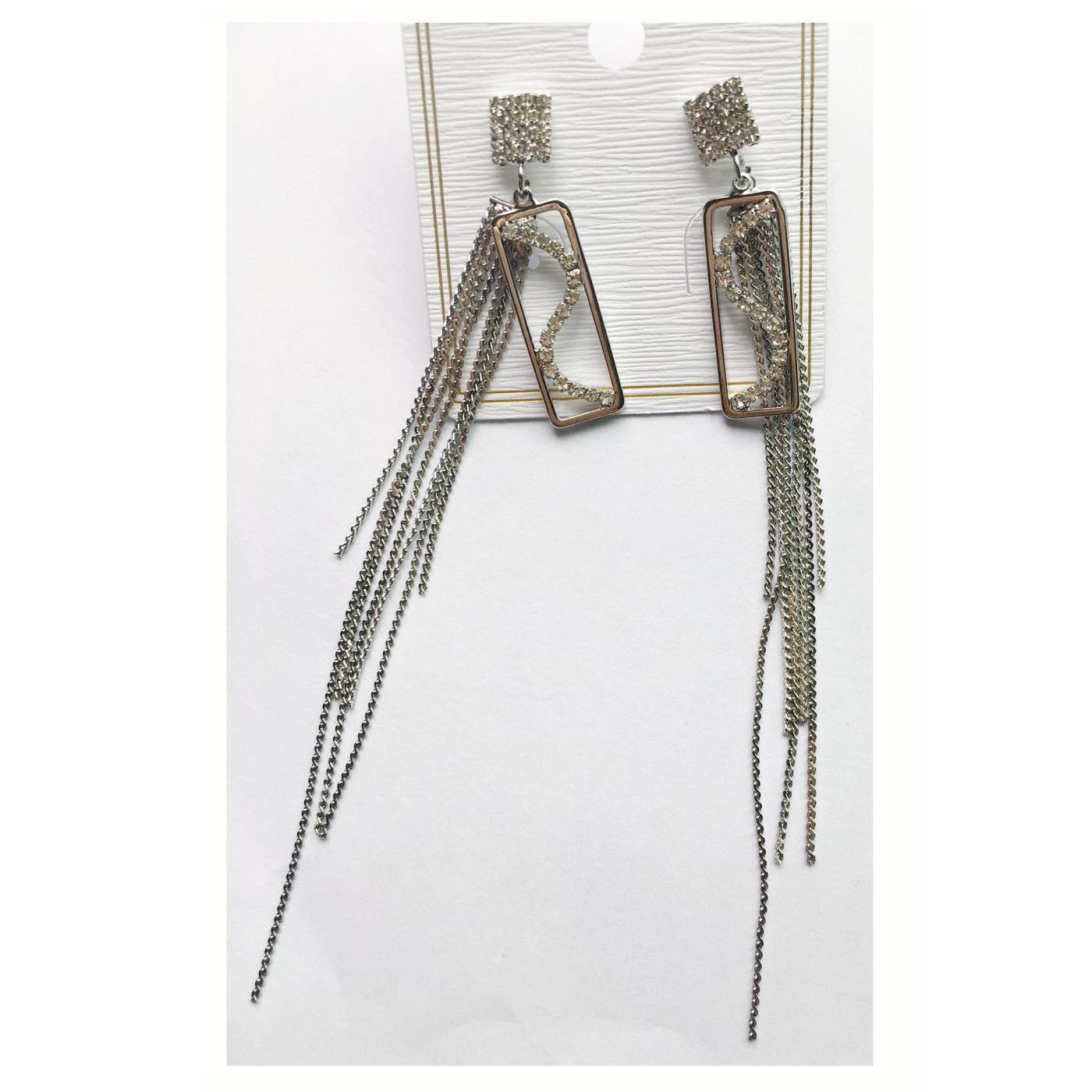 • As shown is a high-fashion crystals and charm stainless steel chains drop earring.