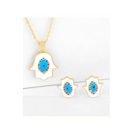 • This is a set of pendant necklace and stud earring highlighted by gold plated alloy parts.