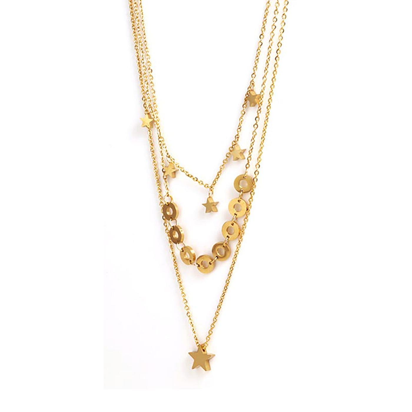 As shown is an elegant trendy necklace with multiple strands each highlighted by golden plated chains.