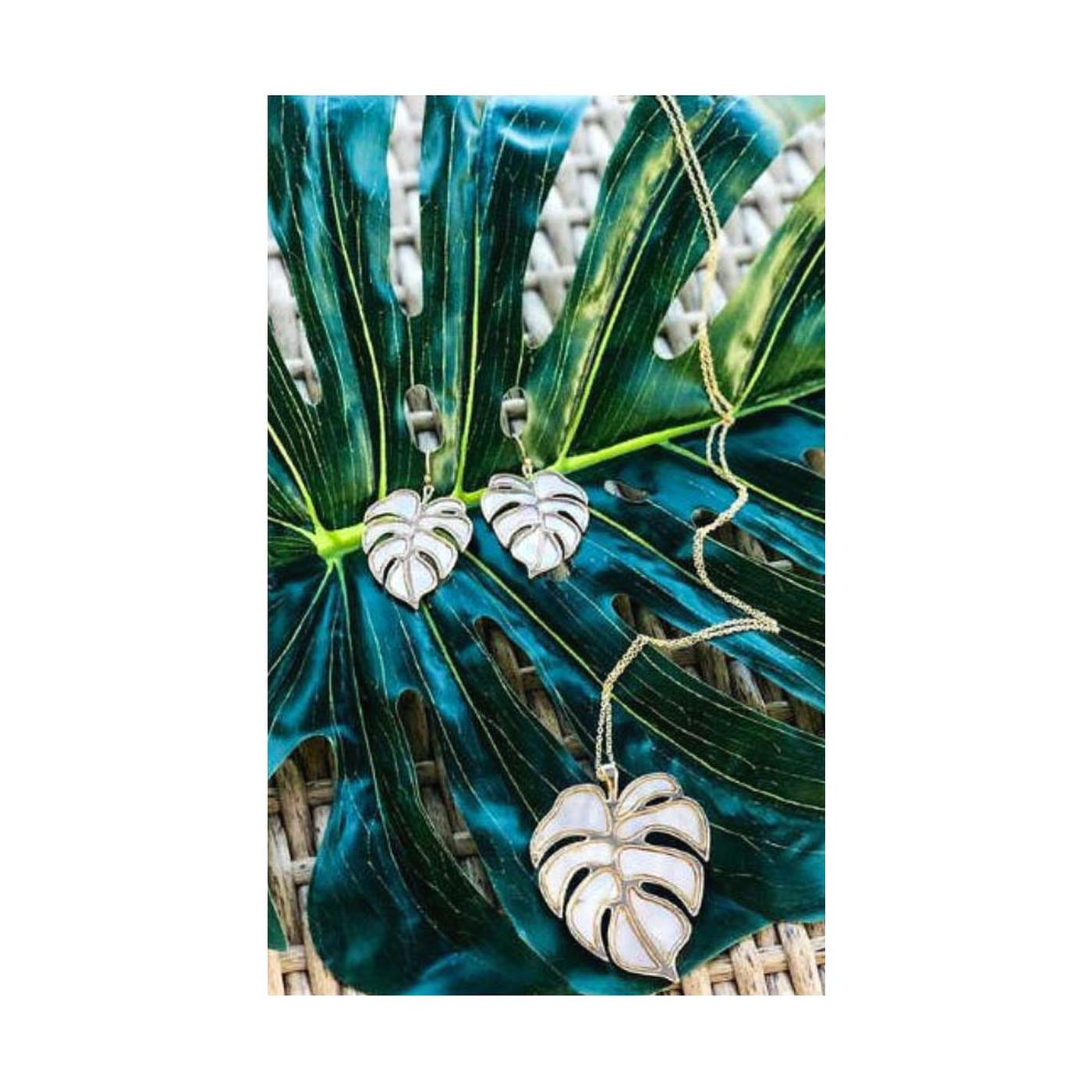 Charm Leaf Pendant Necklace and Drop Earring Set