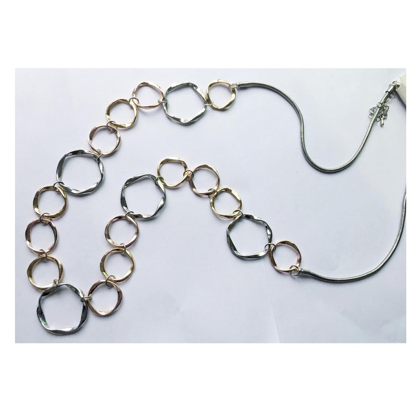 • This is a trendy necklace highlighted by silver and gold plated alloy parts.