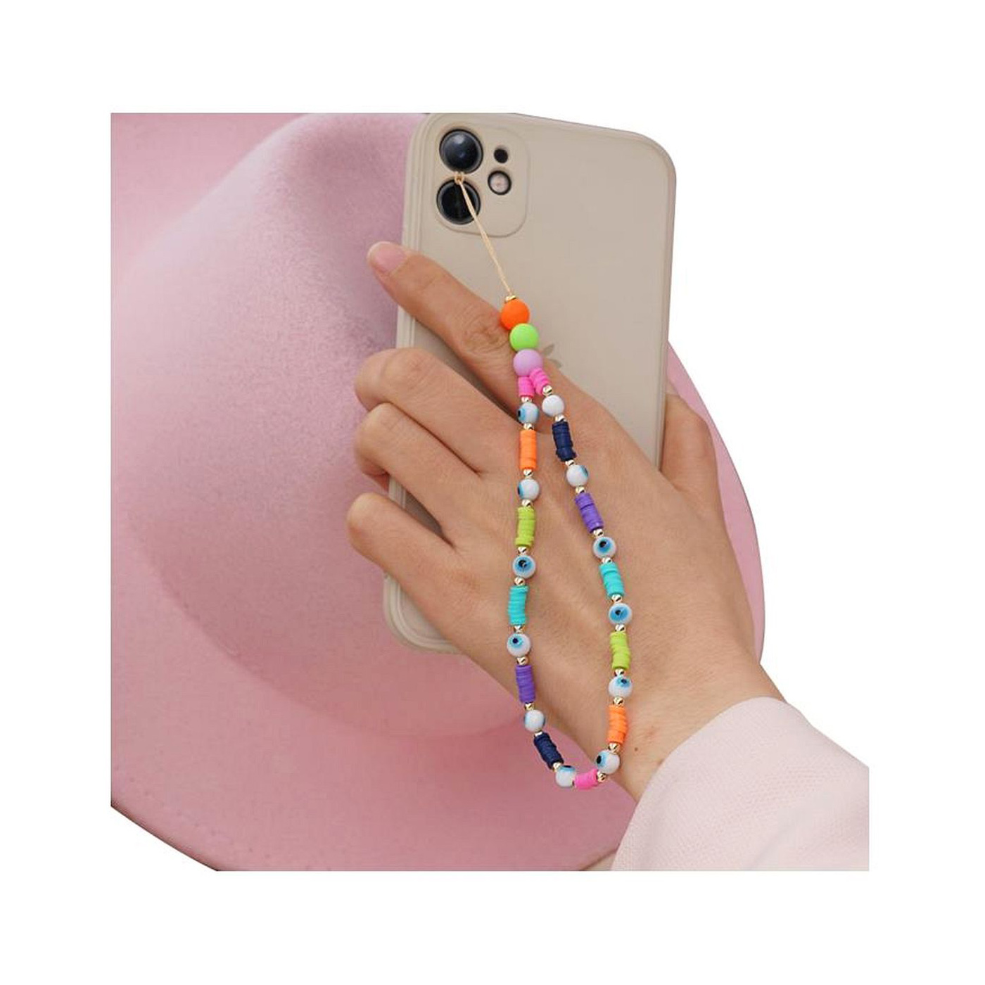 • As shown is a high-fashion mobile phone string with multi colors clay materials.