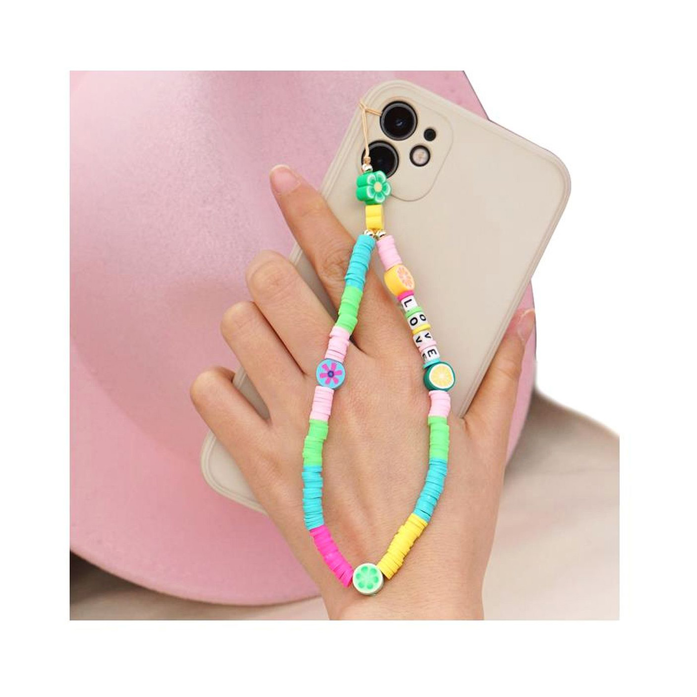 • As shown is a high-fashion mobile phone string with multi colors clay materials.