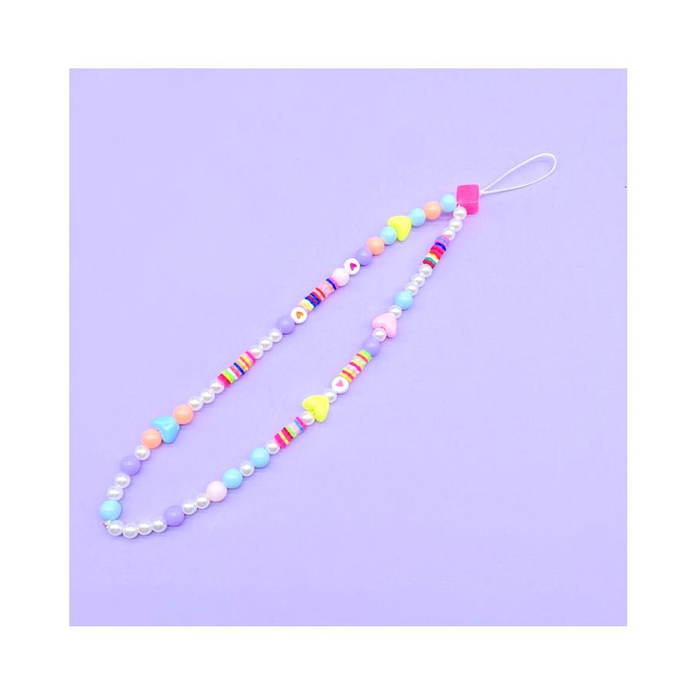 As shown is a high-fashion mobile phone string with multi colors clay materials.