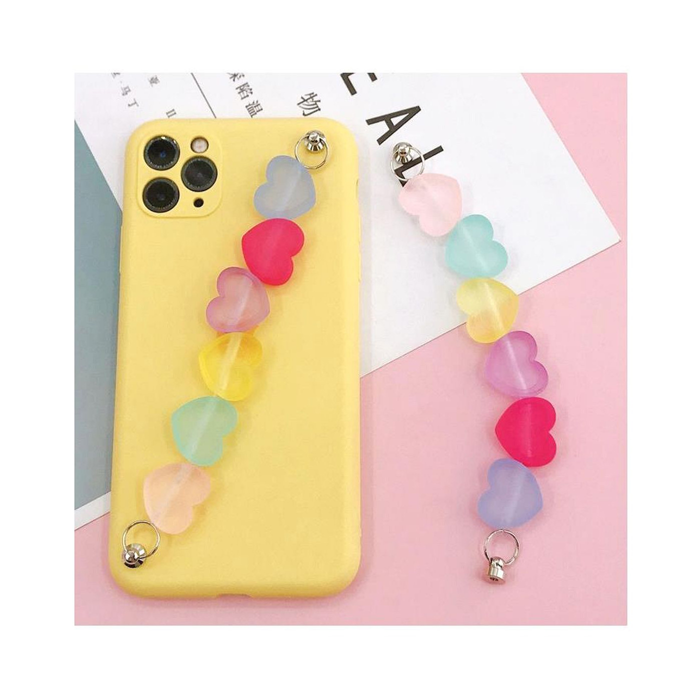 As shown is a high-fashion mobile phone string with multi colors heart plastic materials.
