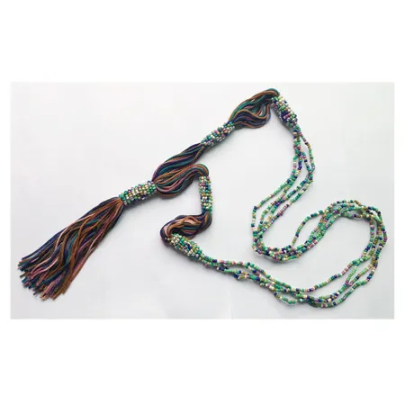 • As shown is an elegant trendy necklace with multiple strands each highlighted by plastic beads accessories.