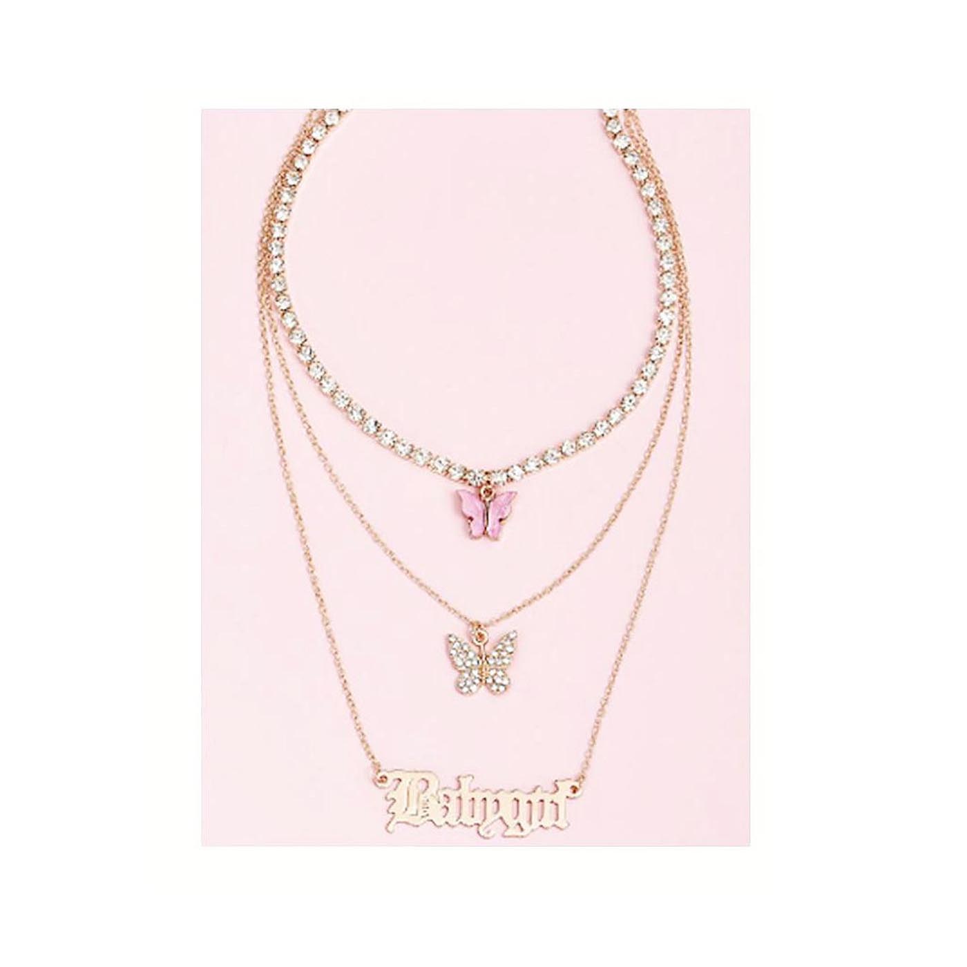 Charm Multi Strand Alloy Butterfly Pendant Crystals Chains Necklace