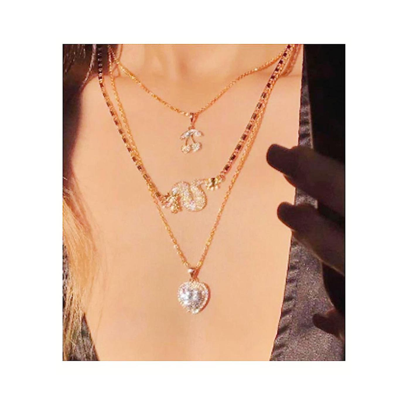 Charm Multi Strand Alloy Heart Pendant Chains Necklace